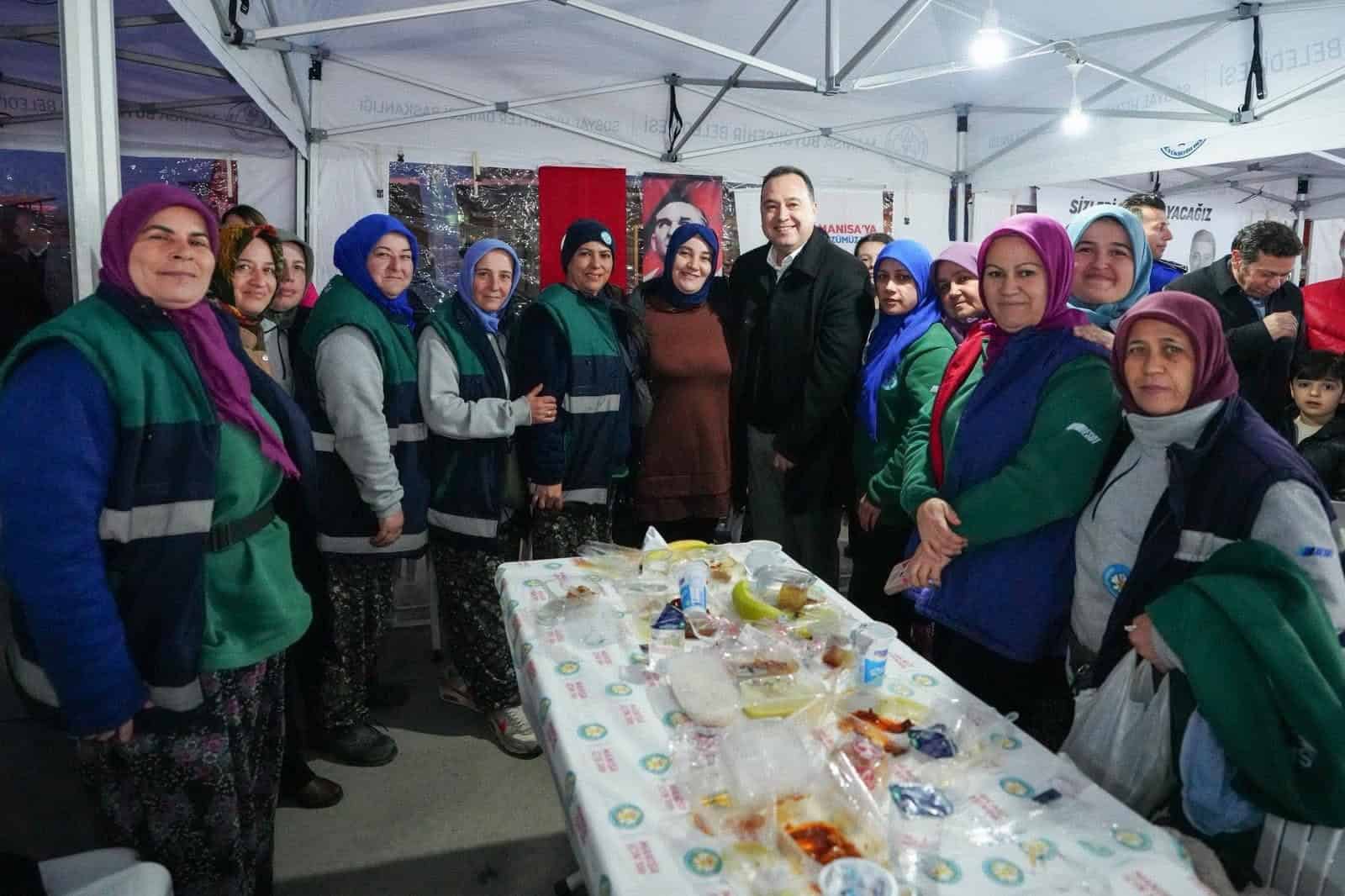 İftar sofrasında konuşan Başkan Dutlulu, sahada görev yapan ekiplere teşekkür ederek, “Şehrimizde normalin üç katı yağış yaşandı ve bu dönemi ancak sizin özverili çalışmalarınız sayesinde hafif atlatabildik. Mazgalları temizleyip her noktaya yetişerek Manisa halkının mağduriyetini önlediniz. Hepinize gönülden teşekkür ediyorum,” dedi.