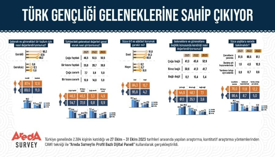 Areda Survey Türkiye genelinde 2.384 kişinin katılımıyla gerçekleştirdiği Türk toplumundaki gelenek algısı araştırmasına göre gençler yüzde 91,5 ile örf ve adetleri en...