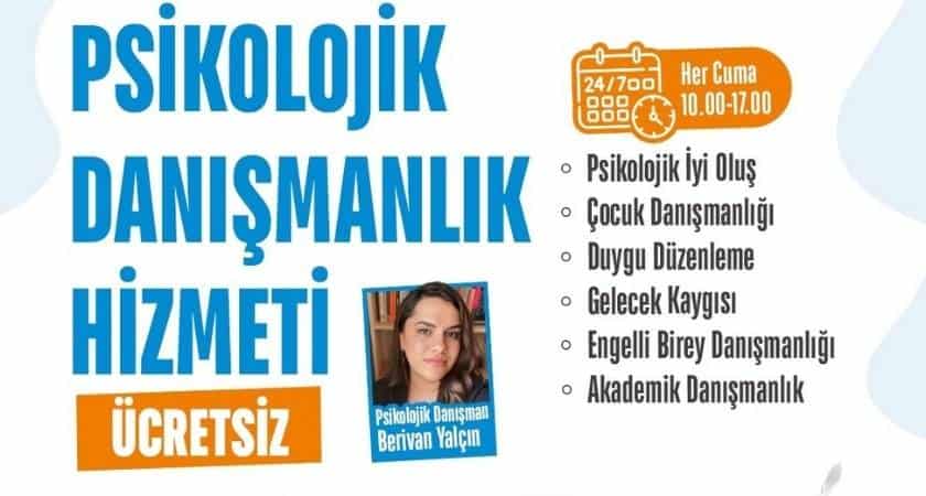 Vatandaşların sadece fiziksel değil, ruhsal sağlıklarını da korumaları gerektiğini belirten Psikolojik Danışman Berivan Yalçın, “Kaygı, ailevi sorunlar, çocuklarda uyum problemleri ve engelli bireylerin psikolojik ihtiyaçları konu başlıkları altında vatandaşlarımıza ücretsiz danışmanlık hizmeti sunmaktayız. Bireyleri, karşılaştıkları zorluklarla başa çıkabilmeleri için destekleyerek duygusal iyileşme süreçlerinde onların yanlarında oluyoruz. Amacımız, vatandaşlarımızın psikolojik sağlığını güçlendirmek ve yaşam kalitelerini yükseltmek. Güvenli ve destekleyici bir ortamda, her bireyin ihtiyaçlarına özel çözümler sunarak onların iyilik halini geliştirmelerine yardımcı oluyoruz” dedi.