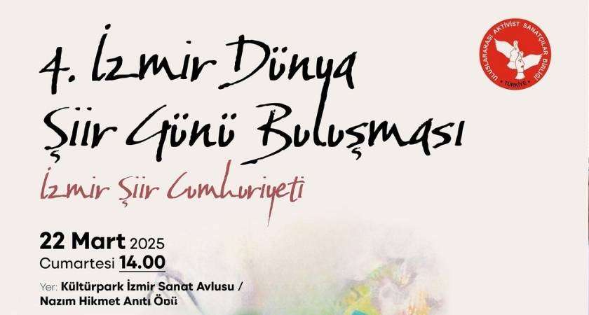 Merkezi İzmir’de bulunan ve 35 ülkede temsilciliği bulunan Uluslararası Aktivist Sanatçılar Birliği, bu yıl 4.İzmir Dünya Şiir Günü buluşmasında İzmirli bütün şairleri...