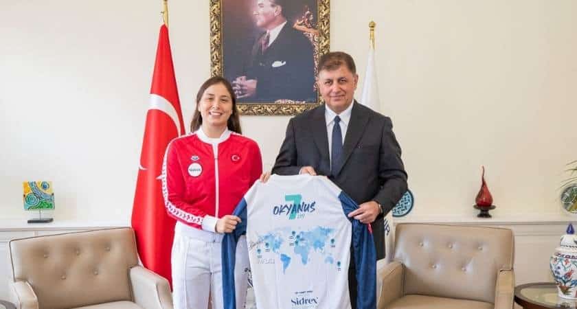 İzmir Büyükşehir Belediye Başkanı Dr. Cemil Tugay, Okyanus Yedilisi adı verilen dünyanın en zorlu yedi kanalından beşini yüzerek geçen ilk Türk kadını...